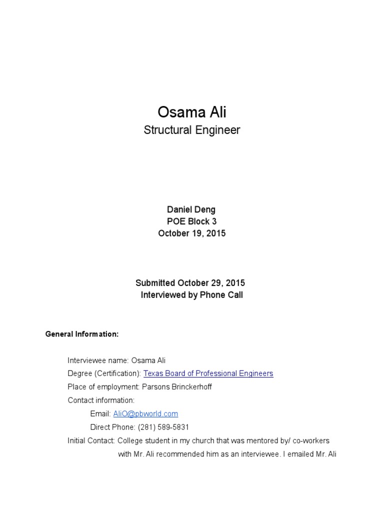 with Mr. Ali recommended him as an interviewee. I emailed Mr. Ali