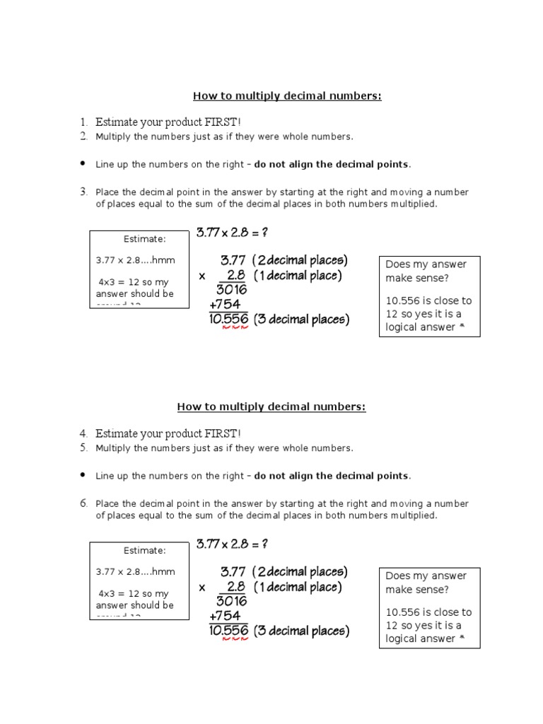 How to multiply decimal numbers: