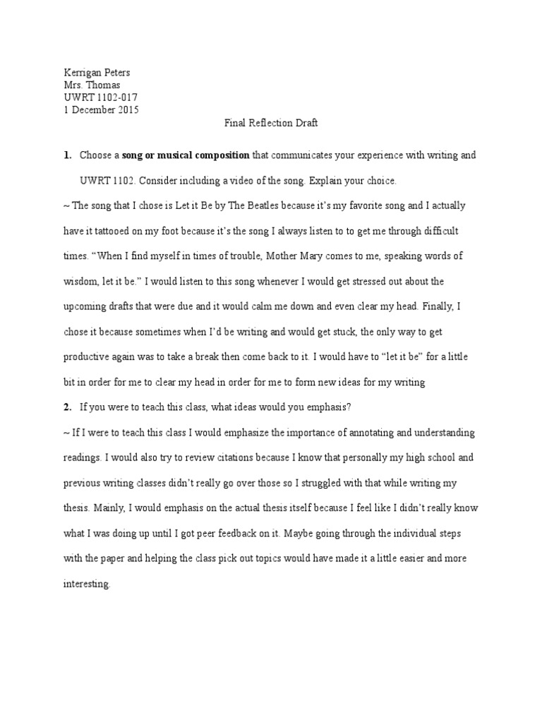 Final Reflection Draft