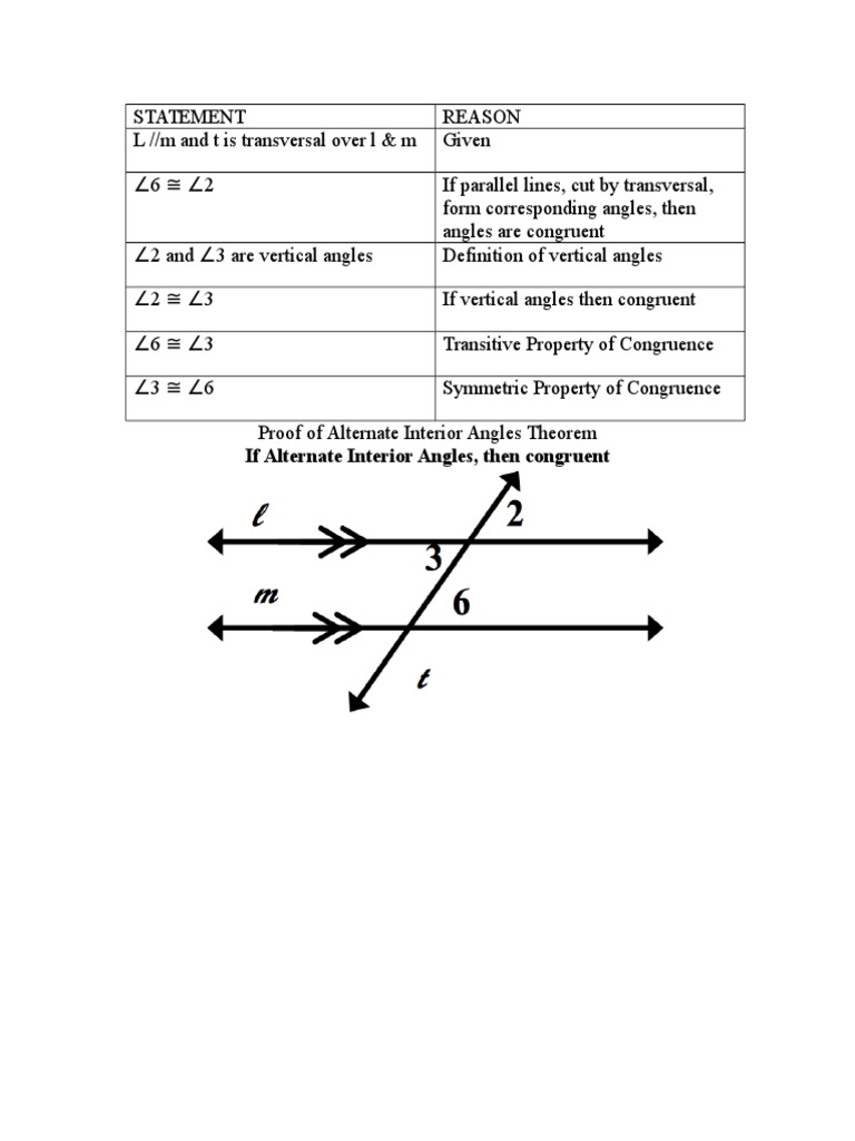 Proof of Alternate Interior Angles Theorem