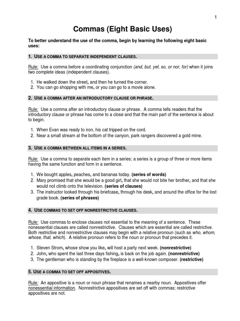 comma rules you have learned and be sure you know why you are adding or deleting a