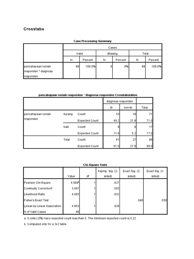 a. 0 cells (,0%) have expected count less than 5. The minimum expected count is 5,22.