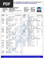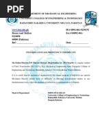 NATIONAL UNIVERSITY OF SCIENCES AND TECHNOLOGY ACADEMIC TRANSCRIPT (Undergraduate) — tion: Degree: BE Mechanical Engineering Date of Award: August 2012 Campus: College of Electrical & Mechanical Date of Issue: 17 December 2012 Engineering cones TICE CRs GRADE GPs CRs GRADE GPs. ‘Semester (06 October 2008 ~ 07 Fol ‘Sth Sompetor (14 February 2011 — 21 June 2011) BS-124-— Engineering Physics 30 A 1200 |] BS338— MathematceM (Probably 30 A 1200 BS-13t — Mathematce-(Vector Ageba& 30 A 1200 Staisics) Calculus) EEA418 Logic Design and 40 8 1200 CH-105 Applied Chemisty 30 A 1200 Microprocessors HU-401 —Communicationfinterpersonsi_ © 20 Be 07.00 || HU-100 Pakistan Studies 20 B+ 07.00 Skis HU-208_Pro‘essional Ethics 20 Cr 0500 HU-102 Islamic Studies 20 A 9800 |] MES18 —Thermofuids Labi 49 8 03.00 Meat 30 B 0900 || MES2 — Porer Plants 30 8 09.00 Me-142 20 8 0600 || ME36 Theory of Machines 30 G+ 0750 Sem GPA: 3.57 ME-338 Mechanics ofMatersisLeb = 1.0.8 03.00 ‘Cum Cr 109.00 (um GPA: 2.44 2nd Semester (02 March 2009 — 08 July 2008) BS-132 Mathemates-I(LinearAigeaa 30 A 1200 || 7thSemester(12 September 2014 — 20 January 2012) ODE) Hu-208—Technica/Business Writing 20° 6 06.00 EC-111 Algorithms and Computing 40 B+ 1400 || E419 Thermonuids Labs 10 A 04.00 ME-111 “Thermodynamics 30 a+ 1050 || Mess Energy Resources ana 30 B+ 1050 MEA131 — Materals Science & Enginesiing 30 B+ 10.50 Utiization ME132 —Enginaering Statics 30 8 99.00 || ME437 Mechanical Vibrations 30 c+ 0750 ME443 AutoCAD. 20 C 04.00 || ME439 Dynamics and ContolsLab = 100.00, ‘cum Cr: 35.00 Cum GPa: 3.60 ME-452 Dosign of Machine Elements. © 30«A_— 1200 ME472 Planning EngineesngiProject «= 20.«B+ 07.00 3rd Somester (28 September 2009 ~ 12 February 2010) Management BS-261 Mathematics (Vector 30 A 200 || ME481 —Insuumentaton ane 20 B+ 07.00 Calculus) jeasuroment FE210 — Electic Crcuits 40 Be 1400 Cum Cr: 128.00 Cum GPA: 3.43 ME-212 Thermodynamics 30 B+ 1050 ME213. Fluid Mechanics 30 B+ 10.50 semester (06 February 2012 — 47 August 2012) ME-233 Engineering Dynamics 30 B 08.00 || ME453 Production Tooling and 30 B+ 10.50 ME-261..... Manufacturing Processes... 20.. B+ . 07.00 ee AULOMBION