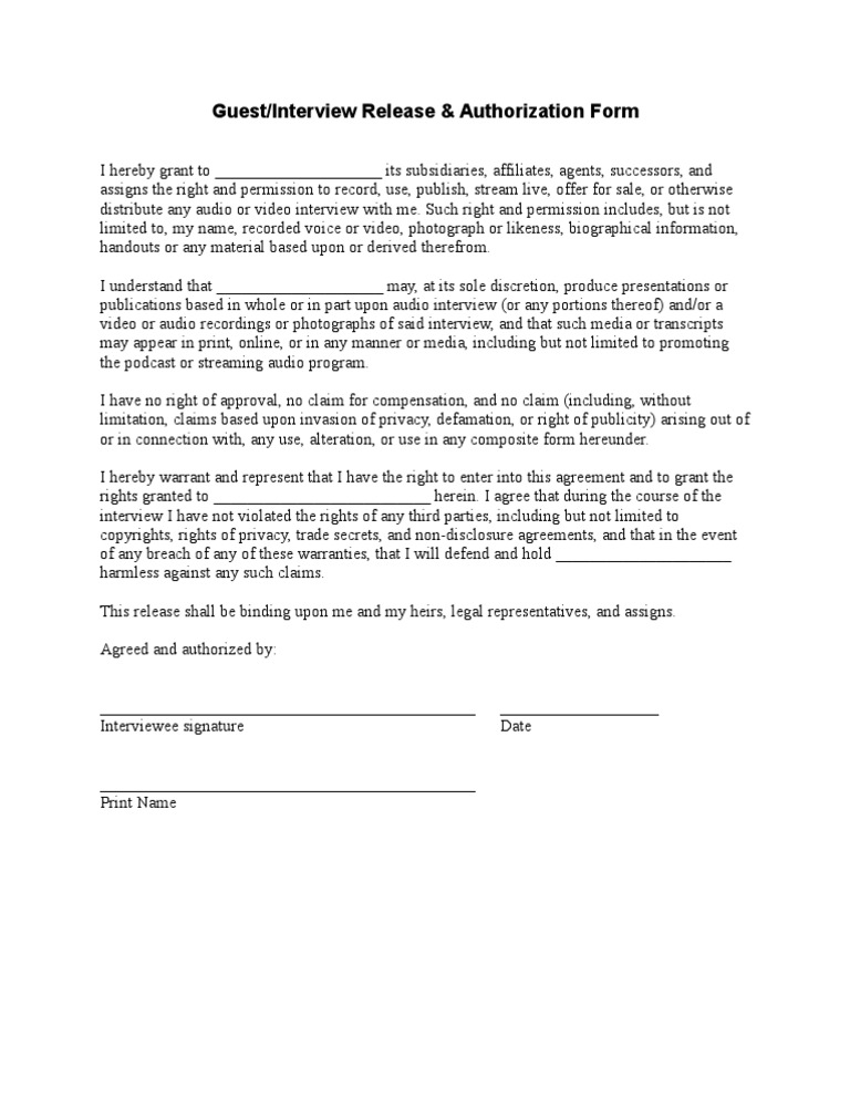 distribute any audio or video interview with me. Such right and permission includes, but is not
