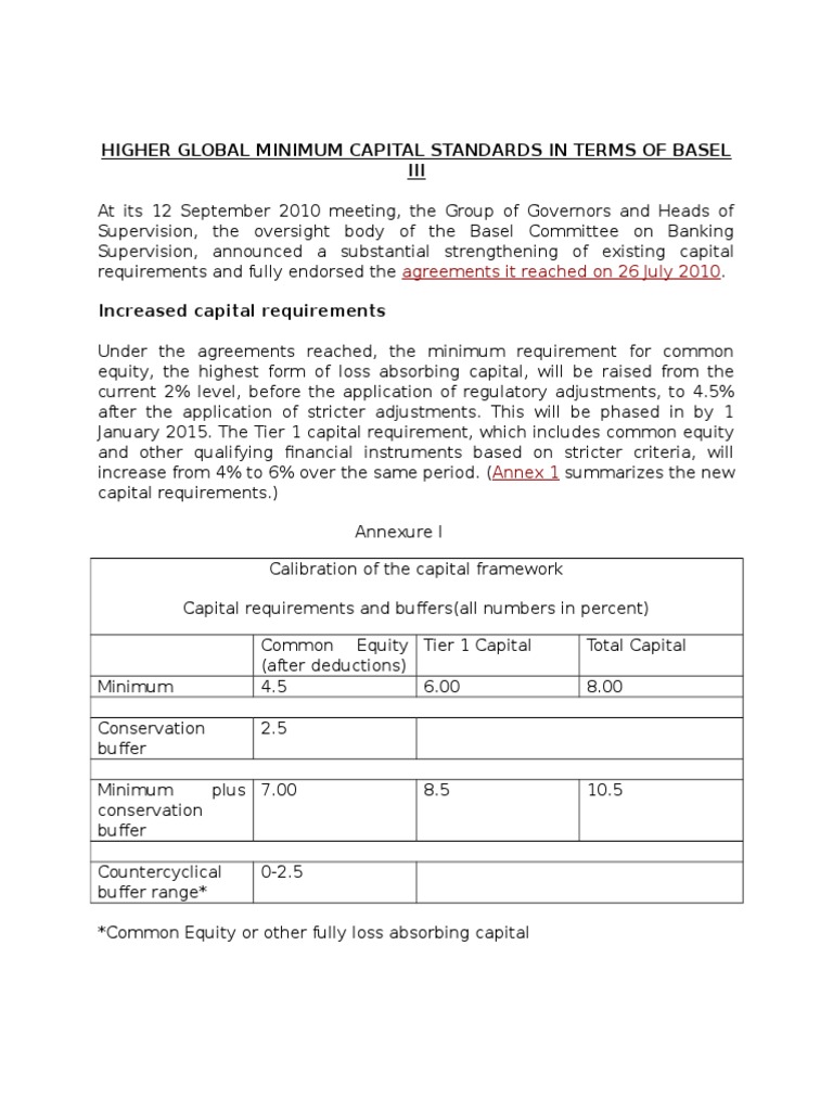 requirements and fully endorsed the agreements it reached on 26 July 2010.