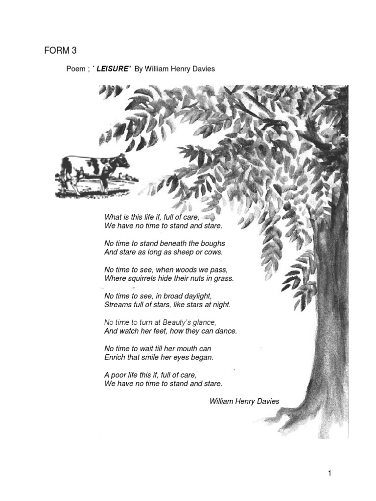 Elements Of The Poem : `LEISURE By William Henry Davies