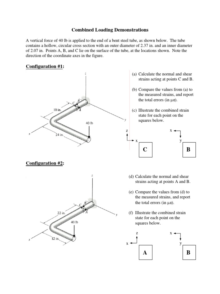 of 2.07 in. Points A, B, and C lie on the surface of the tube, at the locations shown. Note the