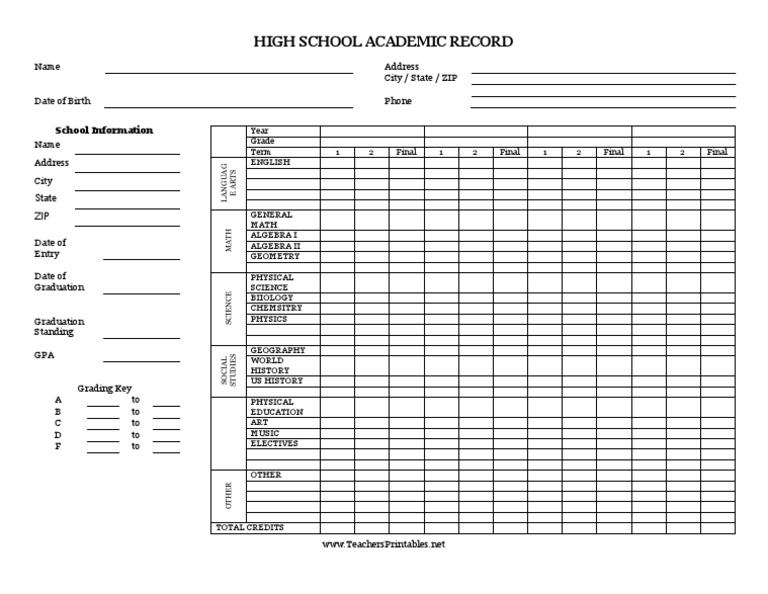 HIGH SCHOOL ACADEMIC RECORD