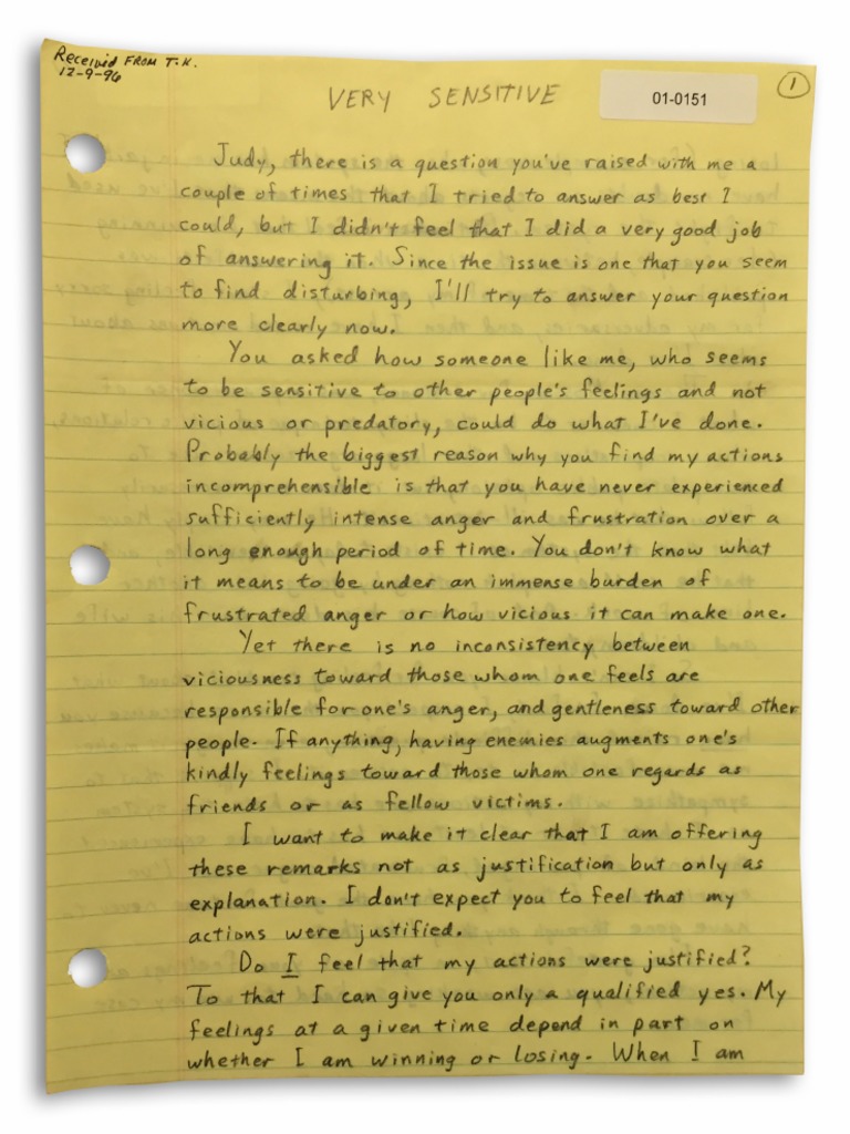 This is a selection included in: 'Letters from a serial killer: Inside the Unabomber ' on Yahoo News.