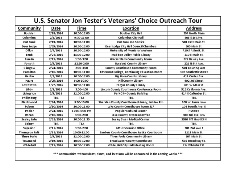 Senator Jon Tester is sending his staff to 28 rural Montana communities to hear directly from veterans about the issues they are experiencing with the Veterans’ Choice Program.