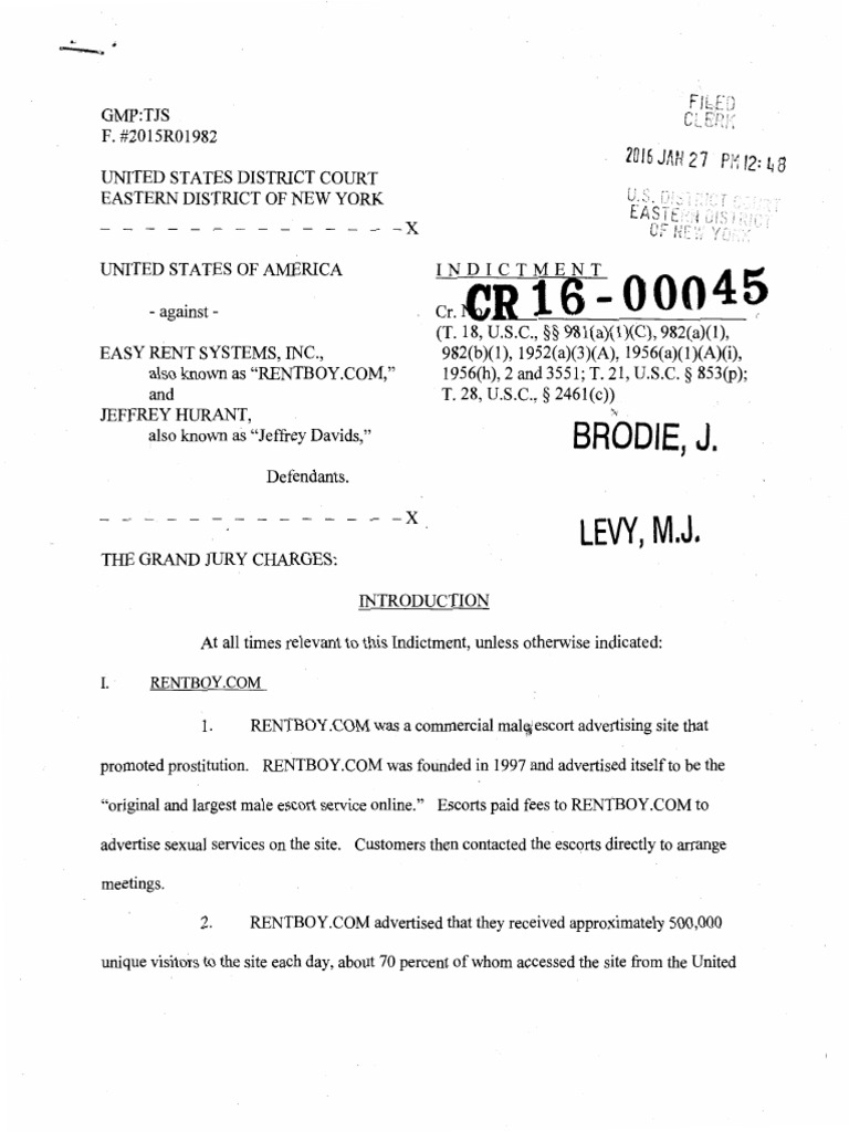 States. There were several thousand escort advertisements on RENTBOY.COM in 2015.