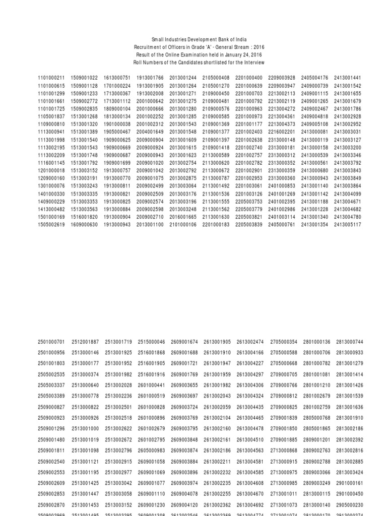 Roll Numbers of the Candidates shortlisted for the Interview
