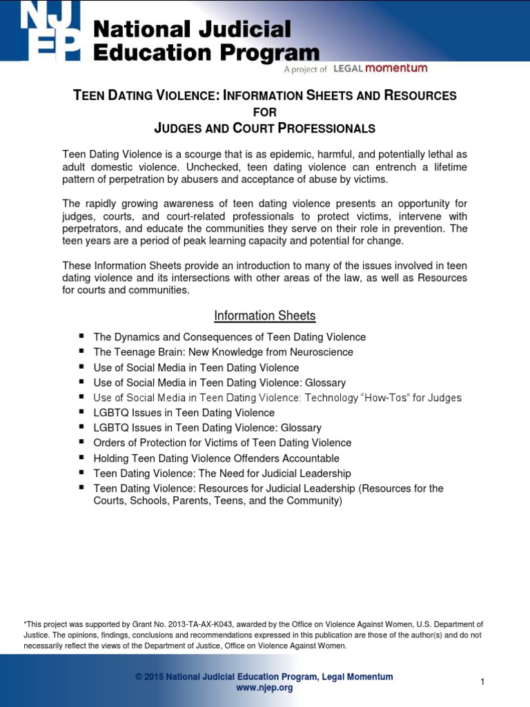 Teen Dating Violence: Information Sheets and Resources For Judges and Court Professionals