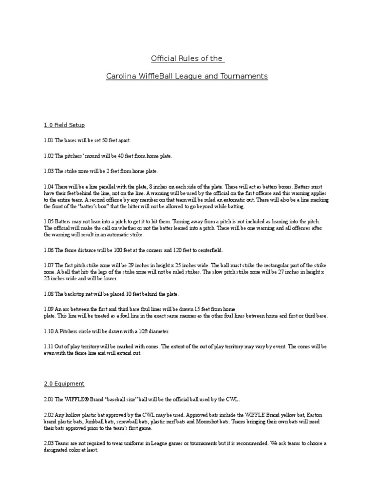 2.01 The WIFFLE Brand baseball size ball will be the official ball used by the CWL.