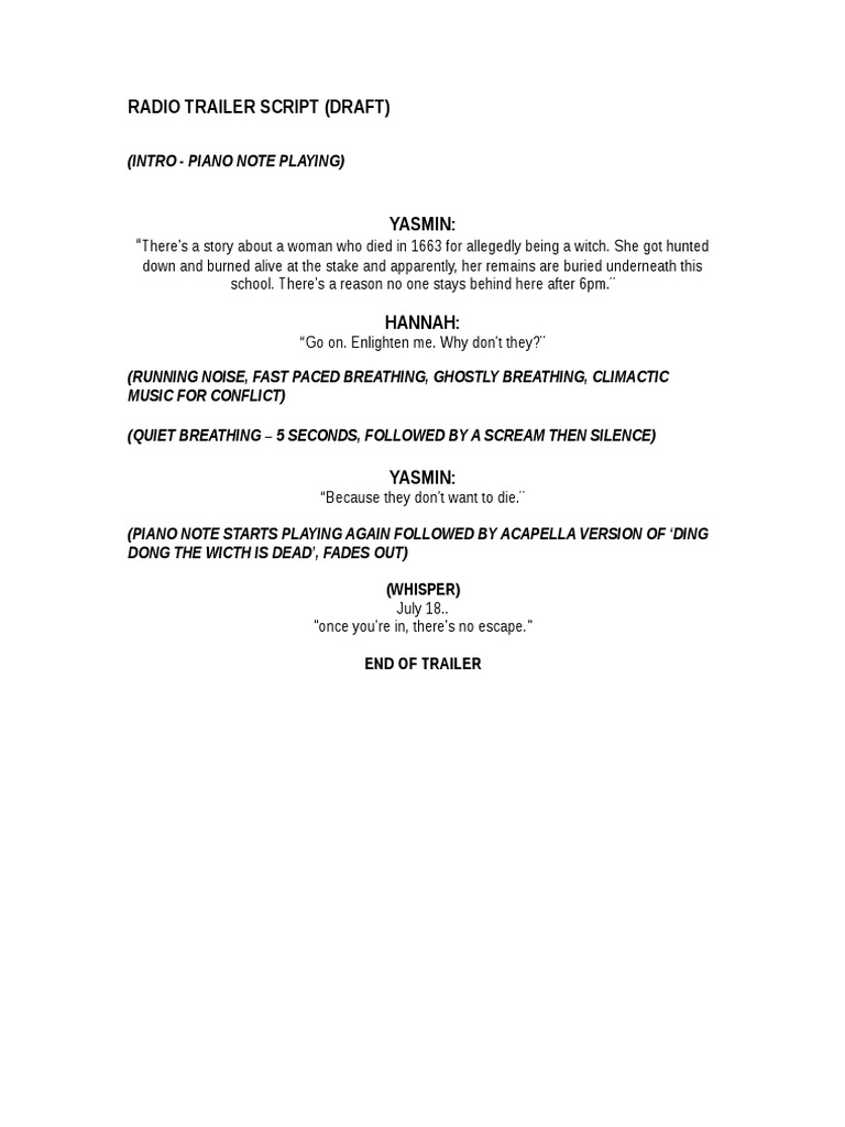 RADIO TRAILER SCRIPT (DRAFT)