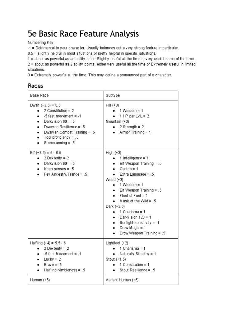 As you can see, all races tend to be close to 6 (5.8) points. I would use 6 as the basic race