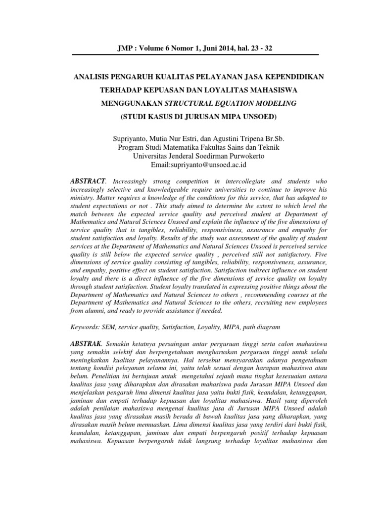 Kata Kunci : SEM; Kualitas layanan; Kepuasan; Loyalitas; MIPA; diagram jalur