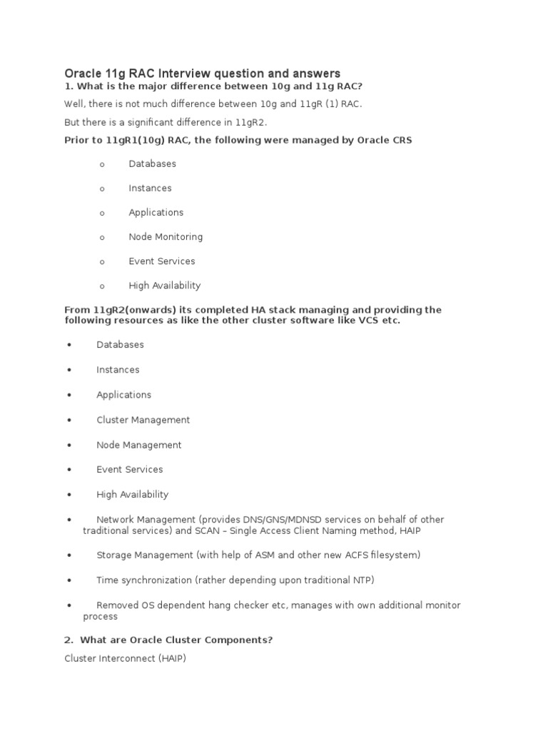 Oracle 11g RAC Interview question and answers