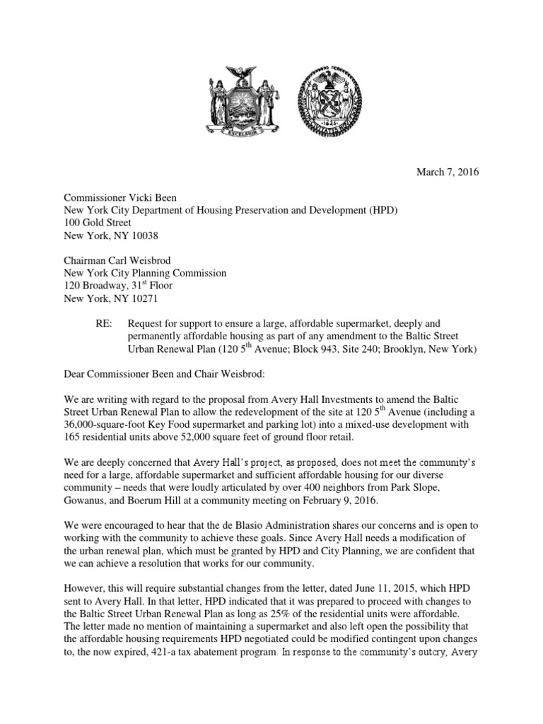 Save Letter to HPD and City Planning on Key Food For Later