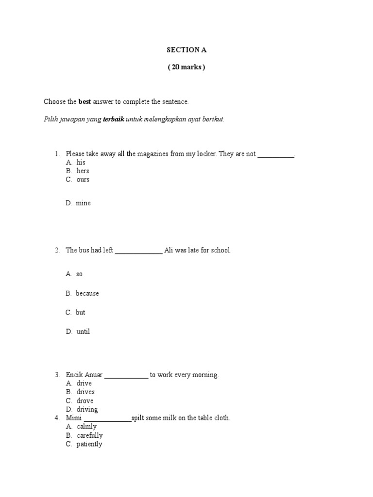 English Grammar Quiz for Students