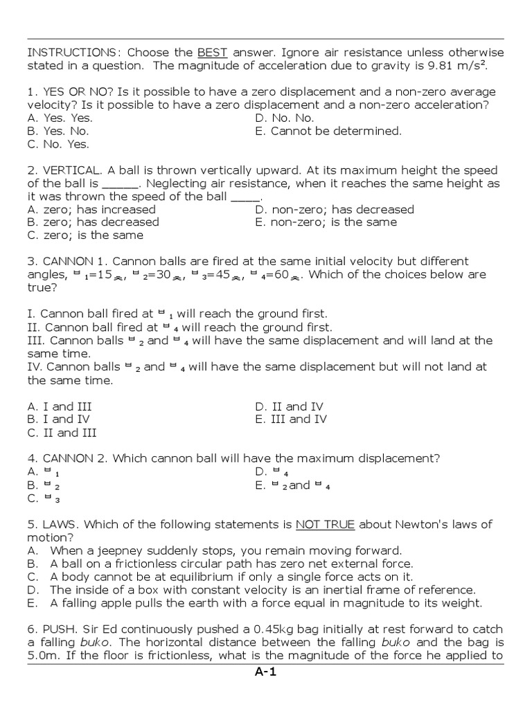 2. VERTICAL. A ball is thrown vertically upward. At its maximum height the speed