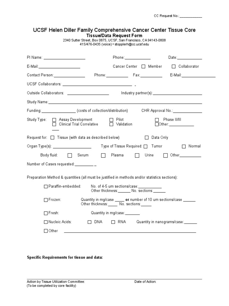UCSF Comprehensive Cancer Center Tissue/Data Request Form