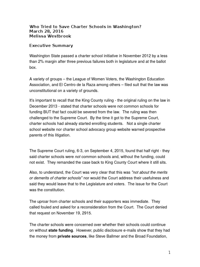 Washington State Charter Schools After The Supreme Court Ruling, Who Was Working To Prop Them Up?