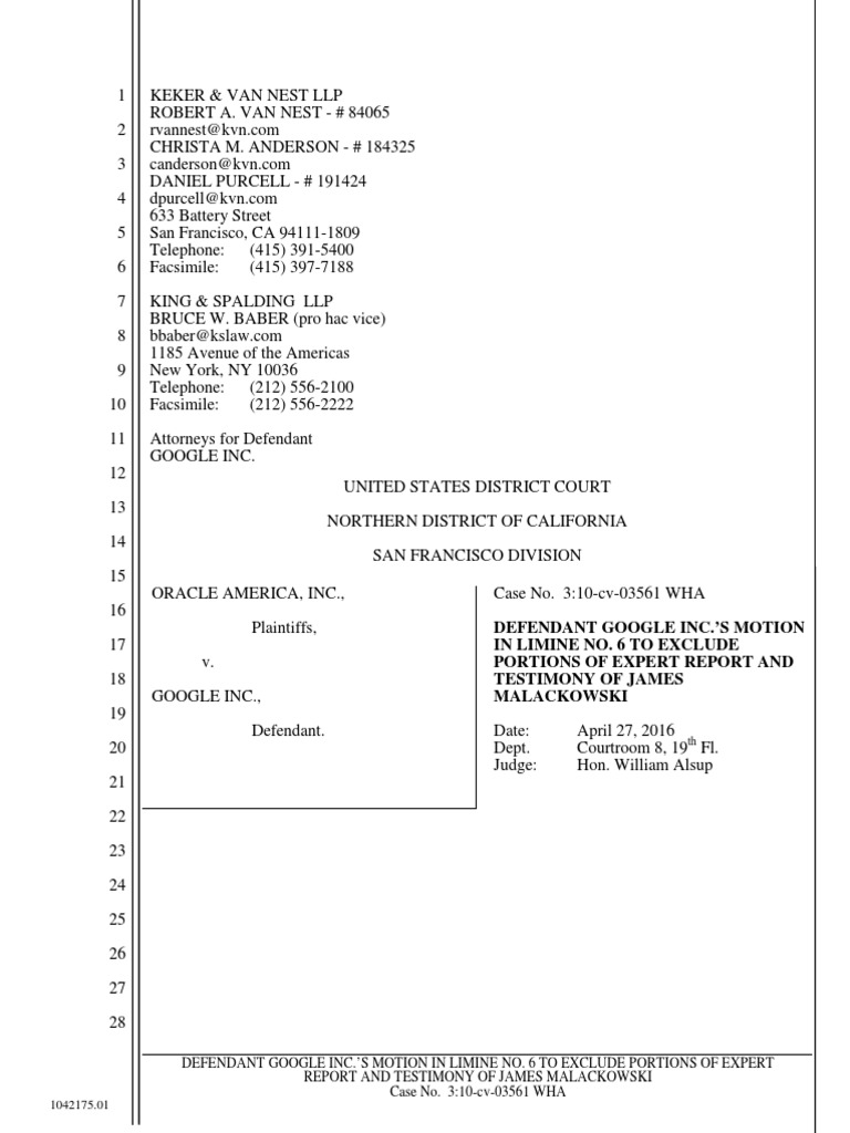 DEFENDANT GOOGLE INC.S MOTION IN LIMINE NO. 6 TO EXCLUDE PORTIONS OF EXPERT