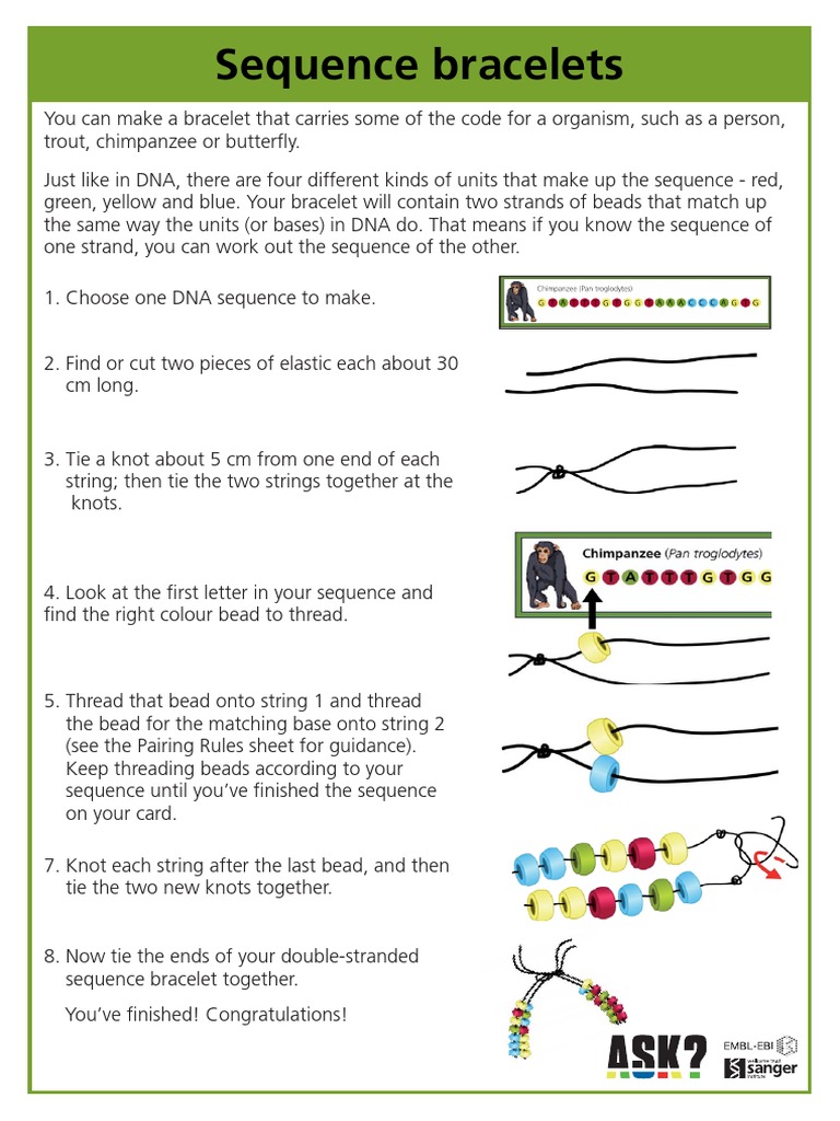 You can make a bracelet that carries some of the code for a organism, such as a person,