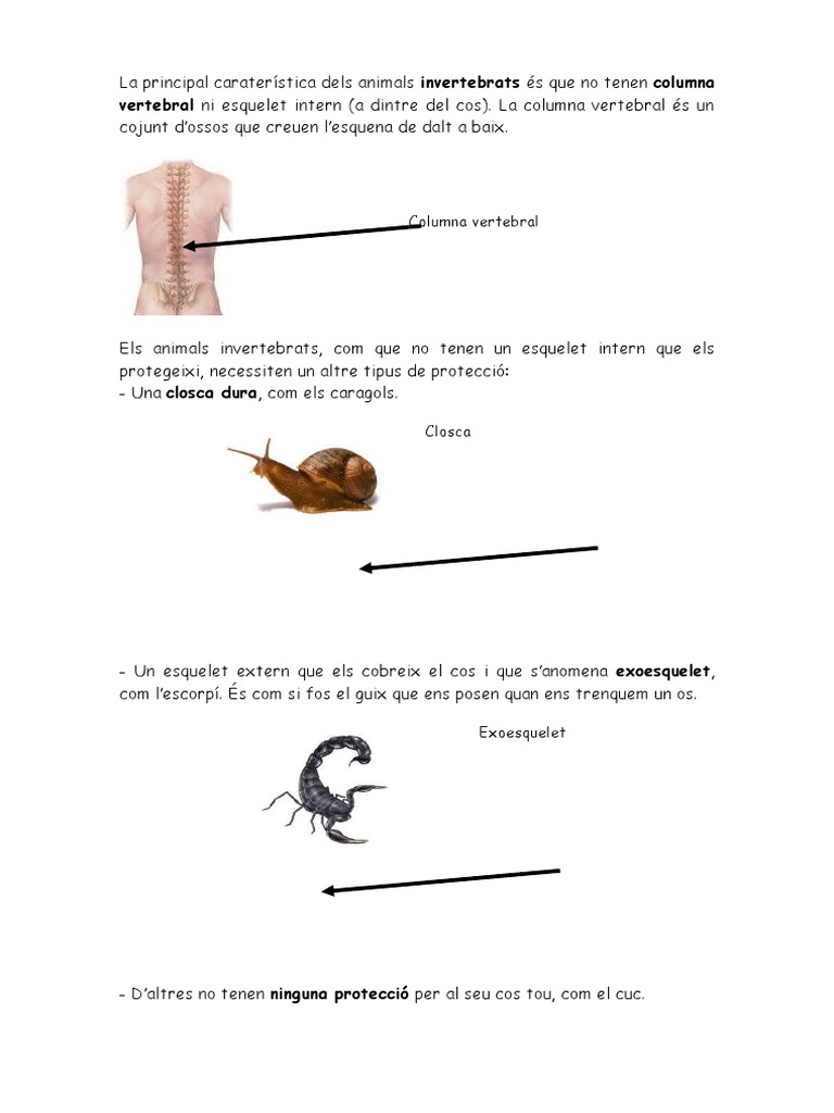 La principal caraterstica dels animals invertebrats s que no tenen columna