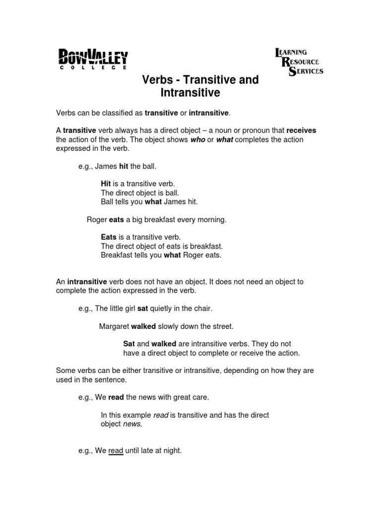 Verbs - Transitive and