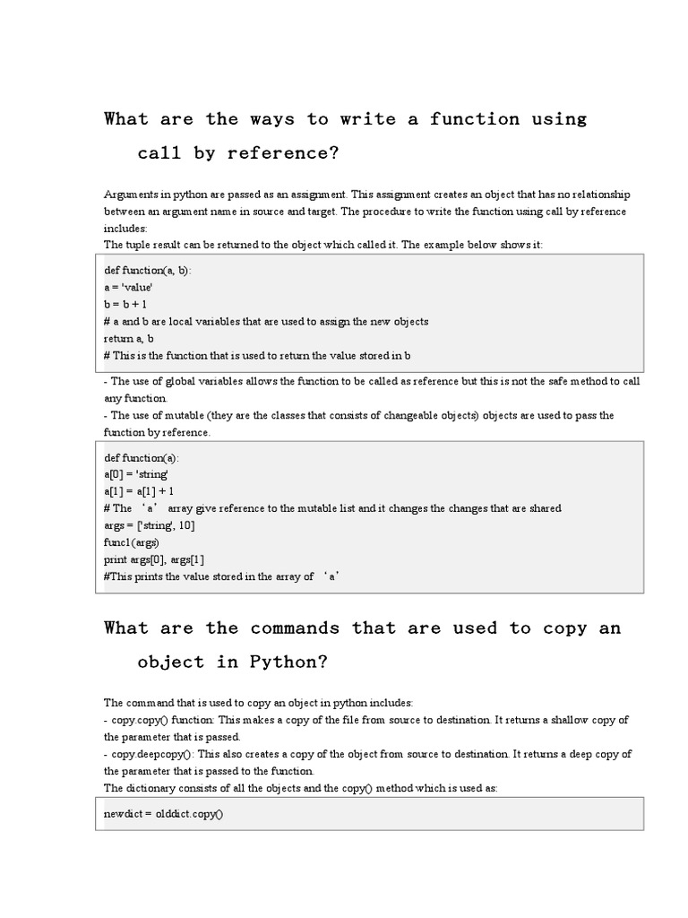 - Shallow copy allows faster execution of the program and it depends on the size of the data that is used.