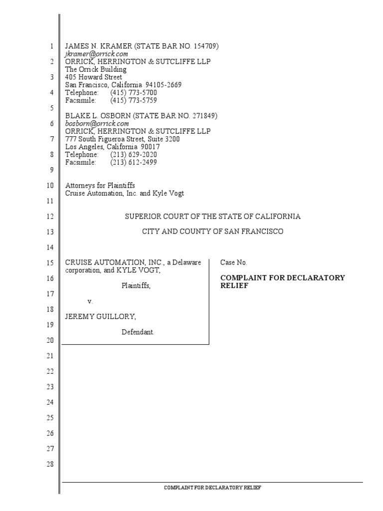 Cruise v. Guillory Complaint for Declaratory Relief