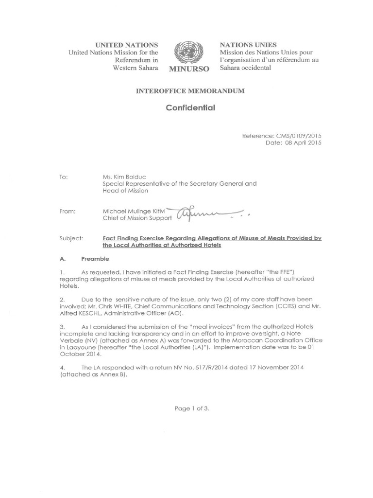 On W. Sahara, ICP Exclusively Publishes Leaked Memo of UN Hotel Fraud, Morocco's Dues