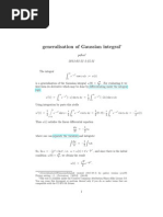 This document discusses Gaussian integrals. It presents the general form of the Gaussian integral and shows that integrating an even power of x times an exponential function equals the square root of pi times a polynomial over n factorial. It also lists some frequently used Gaussian integrals, including integrals of x, x^2, x^3, x^4, and x^5 multiplied by an exponential, and gives the solutions to each.