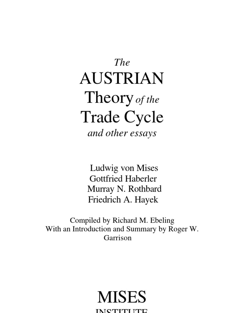 THE AUSTRIAN THEORY OF THE TRADE CYCLE AND OTHER ESSAYS