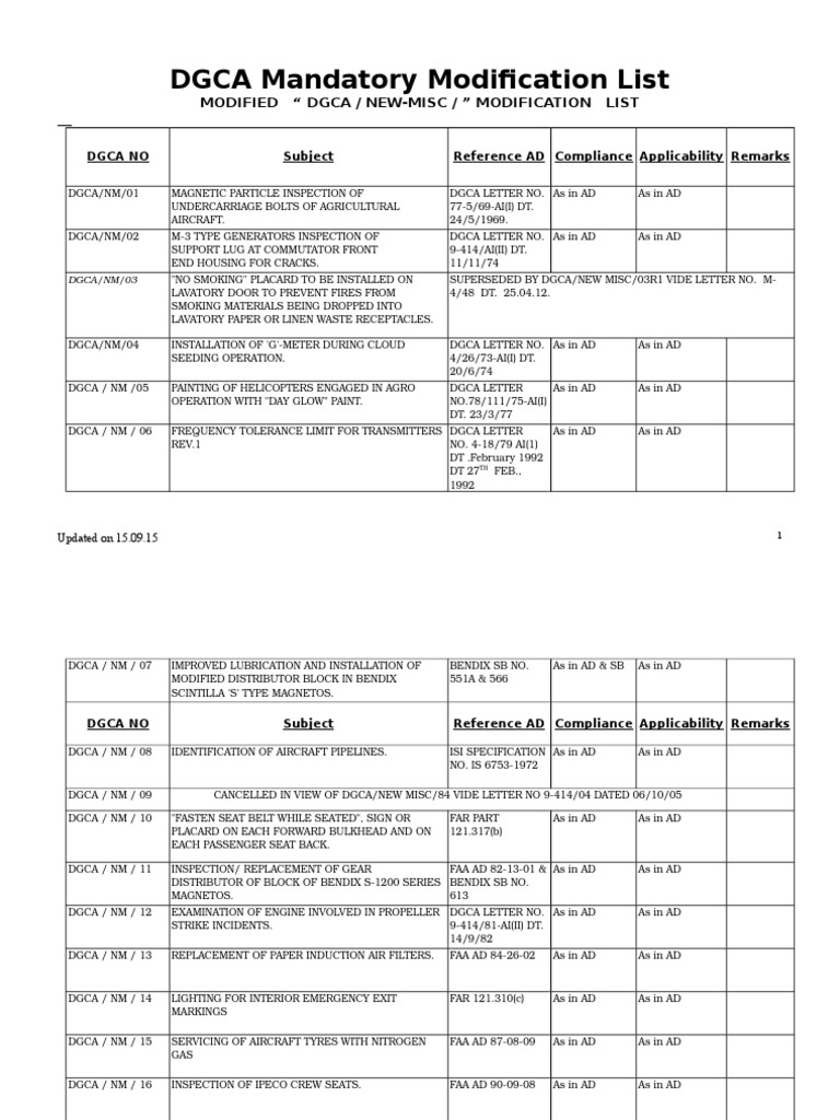 DGCA Mandatory Modification List