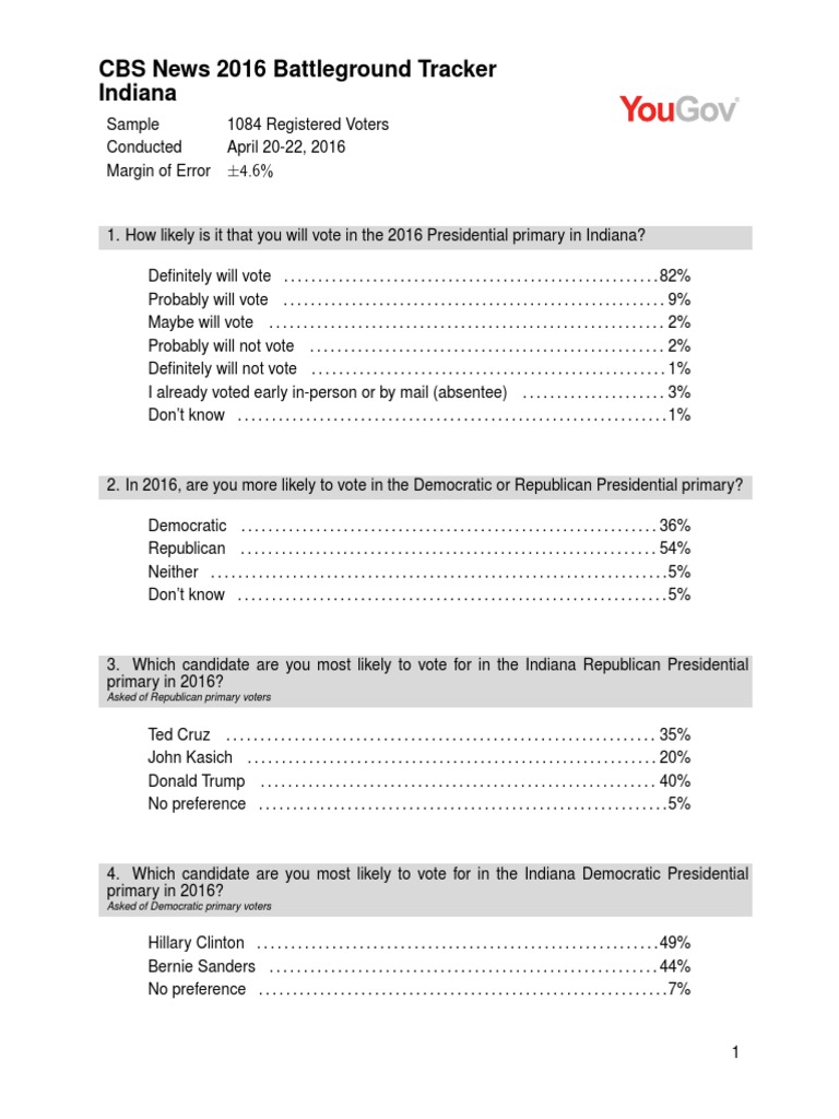 CBS News 2016 Battleground Tracker: Indiana, April 24, 2016