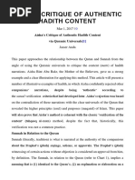 Aisha's Critique of Authentic Hadith Content Via Quranic Universals