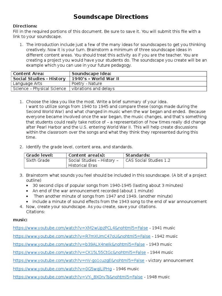 creatively. Now it is your turn. Brainstorm a minimum of three soundscape ideas in