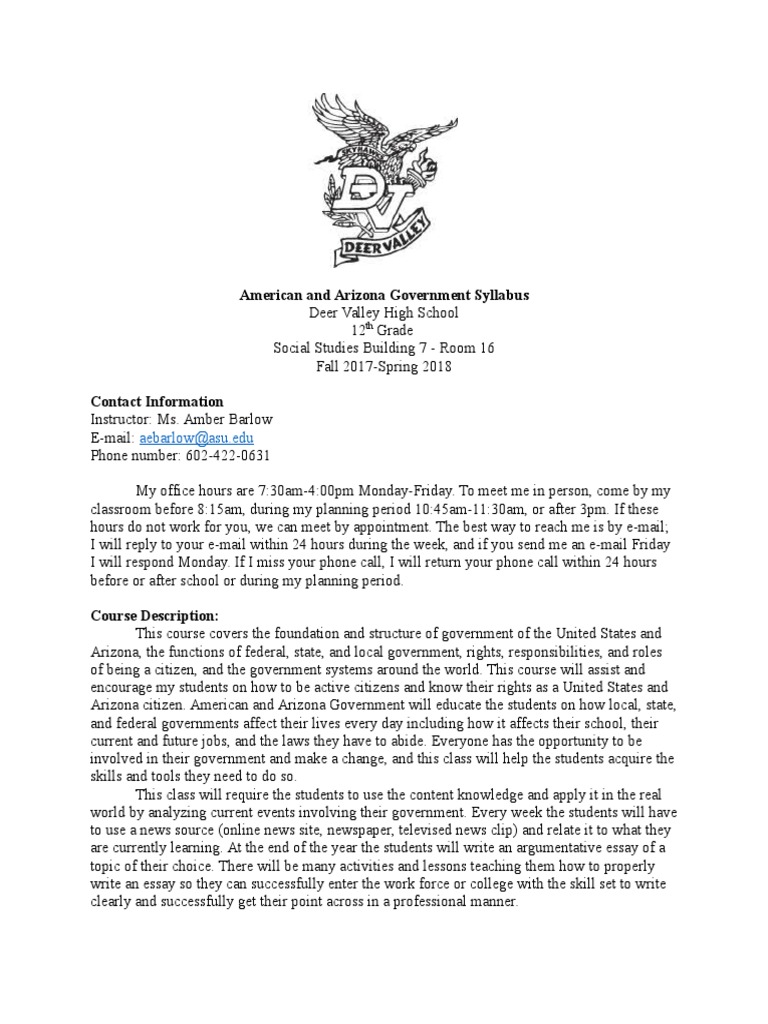 American and Arizona Government Syllabus