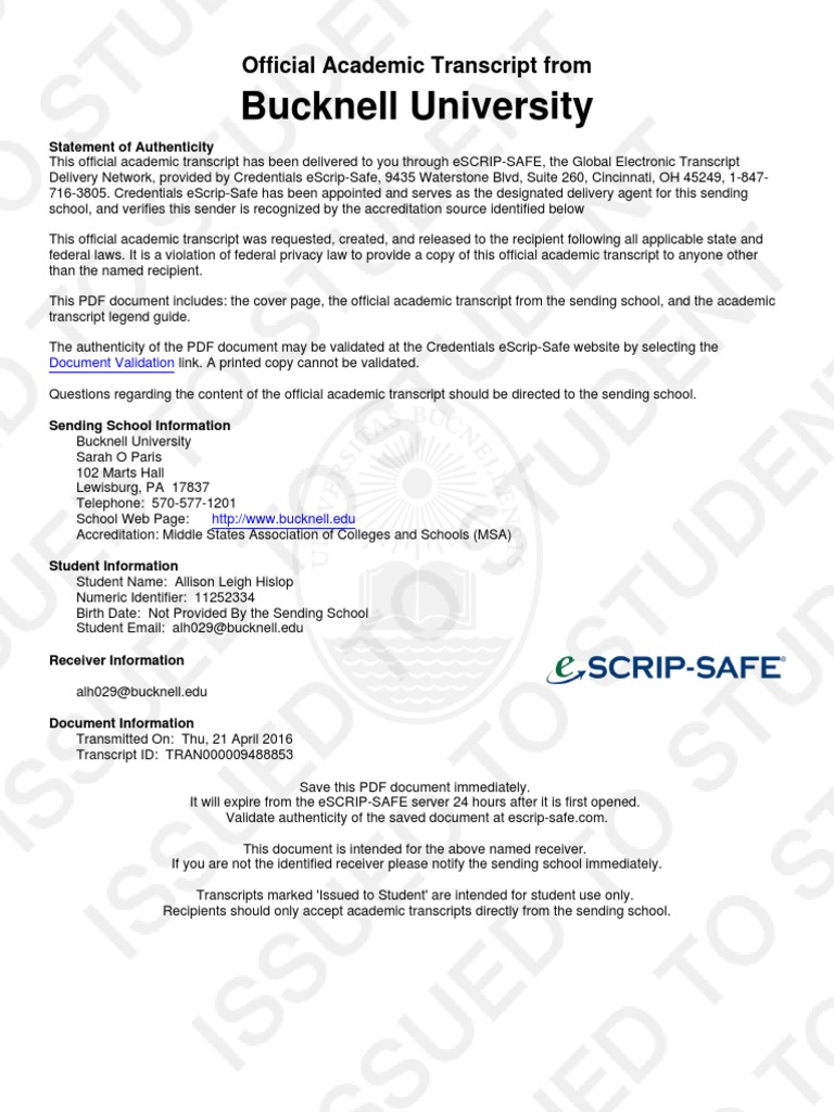 This official academic transcript has been delivered to you through eSCRIP-SAFE, the Global Electronic Transcript