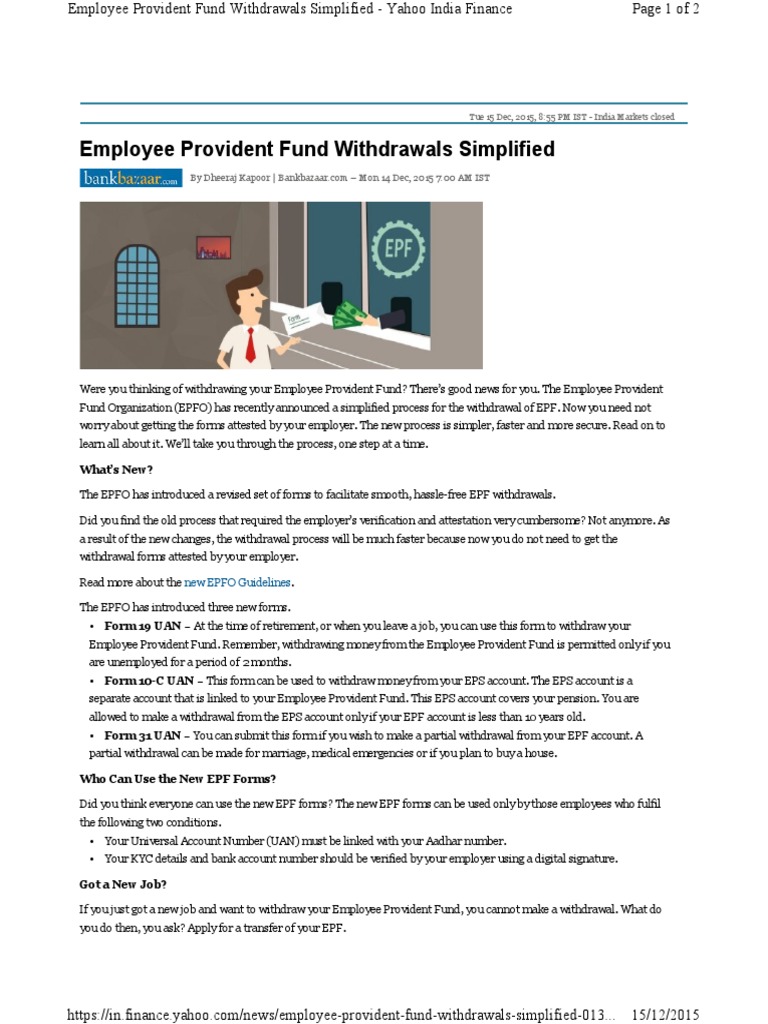 Employee Provident Fund Withdrawals Simplified - Yahoo India Finance