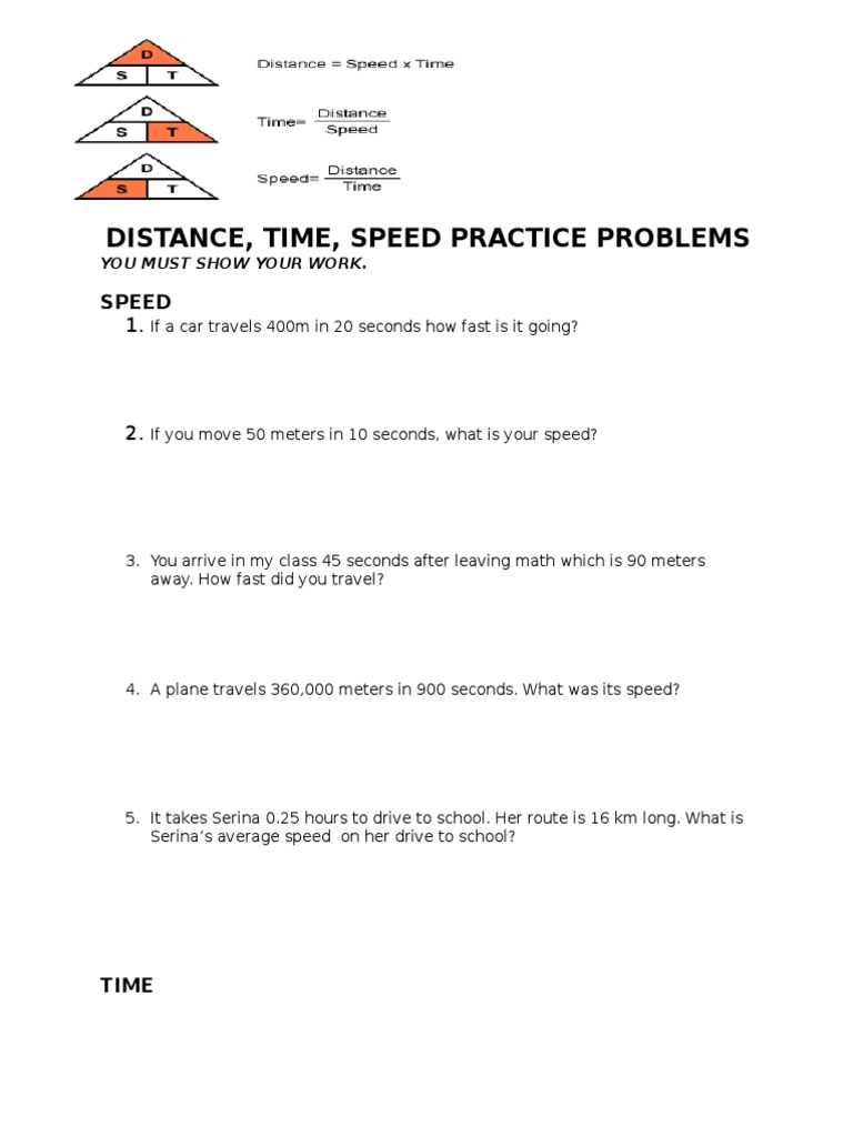 DISTANCE, TIME, SPEED PRACTICE PROBLEMS