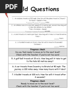 1. If a car travels 400m in 20 seconds how fast is it going?