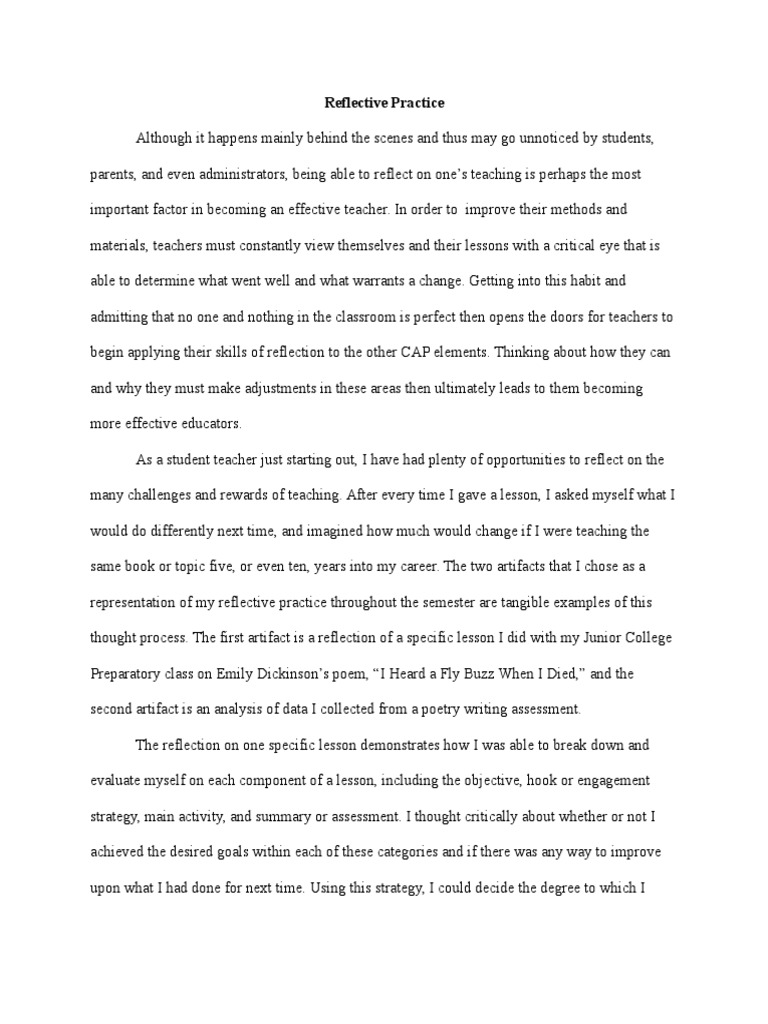 thought process. The first artifact is a reflection of a specific lesson I did with my Junior College