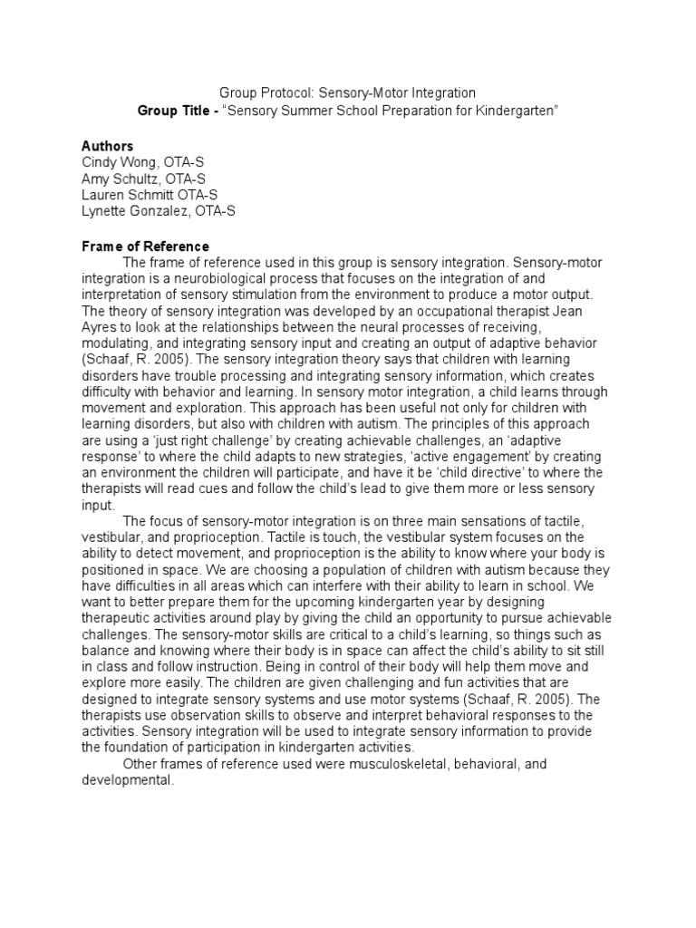 The purpose of this group is to prepare level 1 children with autism for the daily