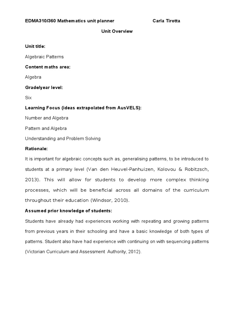 EDMA310/360 Mathematics unit planner