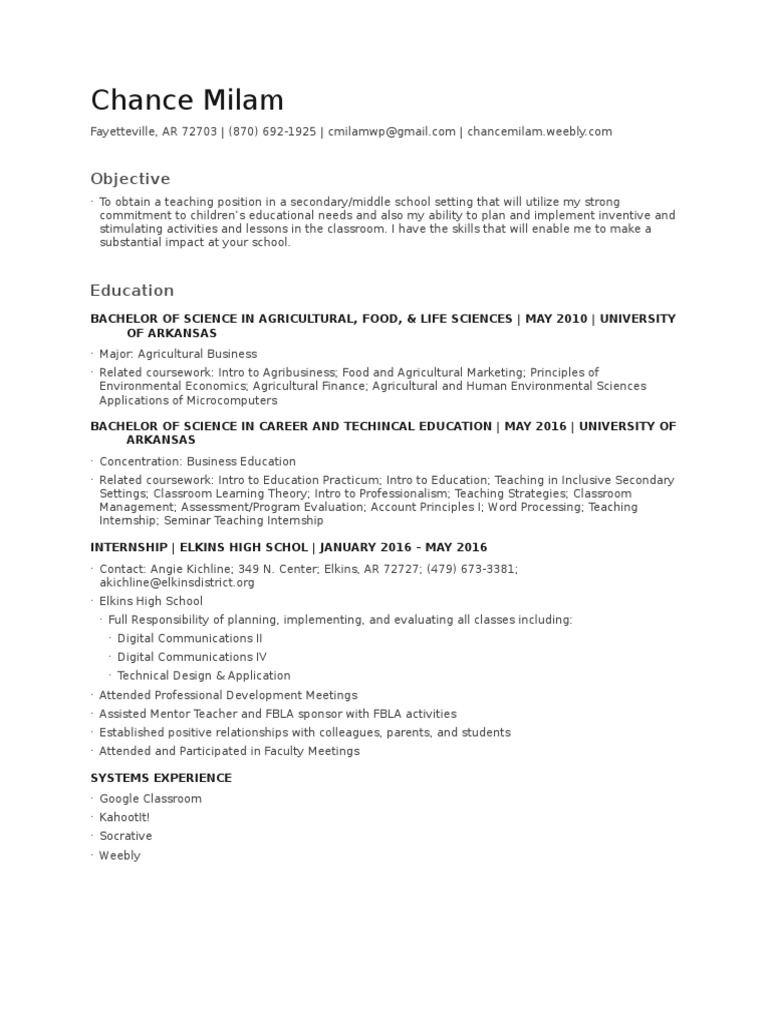 Fayetteville, AR 72703 | (870) 692-1925 | cmilamwp@gmail.com | chancemilam.weebly.com