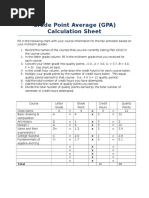 This GPA calculation includes all graded coursework. Do not include courses that were dropped or courses that do not award